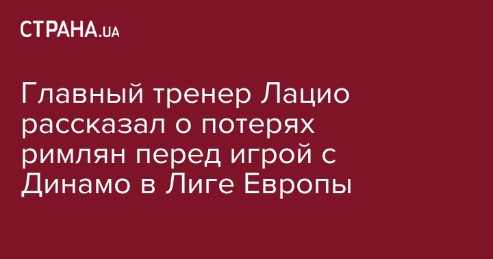 Главный тренер Лацио рассказал о потерях римлян перед игрой с Динамо в Лиге Европы