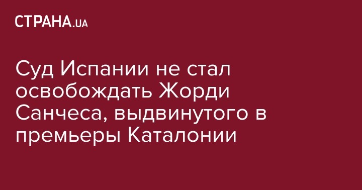 Верховный суд Испании отклонил ходатайство об освобождении из тюремного заключения одного из лидеров движения за независимость Каталонии - Жорди Санчеса. Его кандидатуру ранее выдвинули на пост главы нового каталонского правительства.