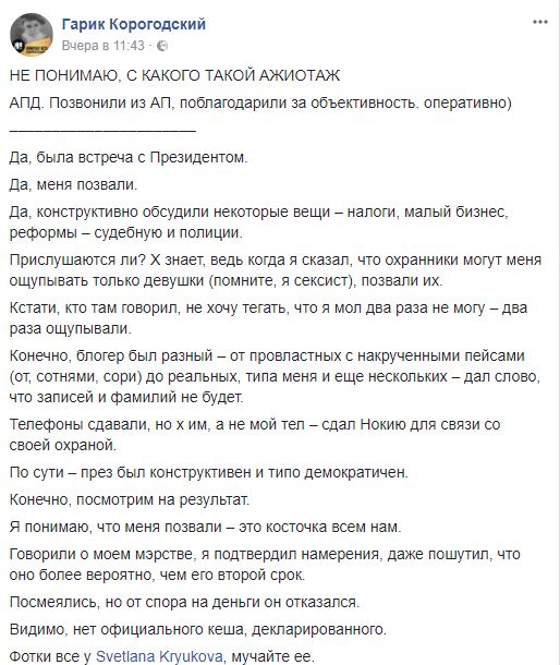 К тому времени многие СМИ написали о встрече президента с блогерами, включив в их число Корогодского, что его очень позабавило.
