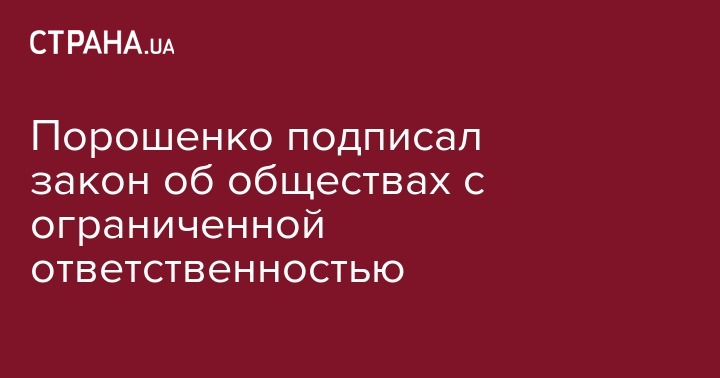 В понедельник, 12 марта, президент Украины Петр Порошенко подписал закон об обществах с ограниченной и дополнительной ответственностью. Глава государства подписал документ во время встречи с представителями бизнеса, передает 112 Украина.