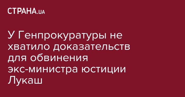 У Генеральной прокуратуры недостаточно доказательств для того, чтобы предъявить обвинения экс-министру юстиции Елене Лукаш. Такое заявление в эфире телеканала ZIK сделал генеральный прокурор Юрий Луценко.