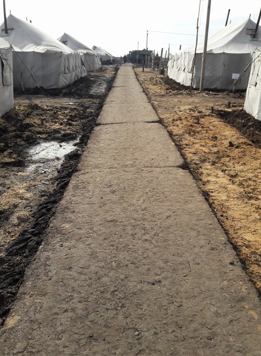 "Все по чуть-чуть налаживается. Есть дрова, есть вода, полевая баня. Привезли песок щебень. На стройке заработала техника", – сказал он.