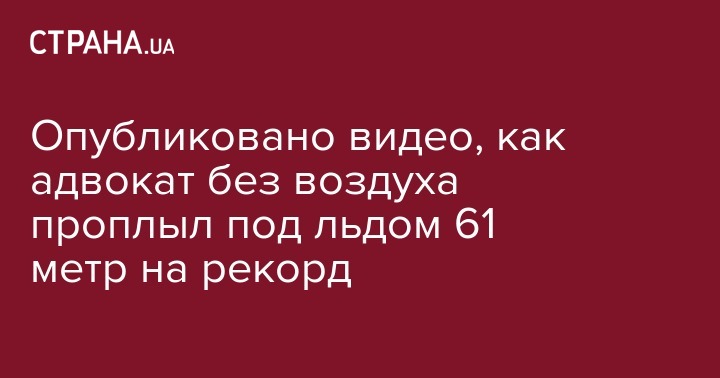 Опубликовано видео, как адвокат без воздуха проплыл под льдом 61 метр на рекорд