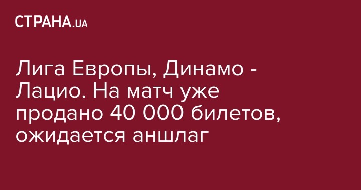 Лига Европы, Динамо - Лацио. На матч уже продано 40 000 билетов, ожидается аншлаг