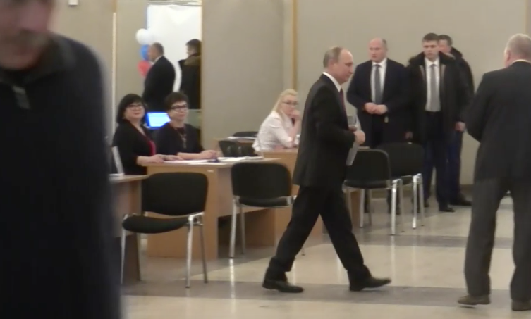 8:43  Путин проголосовал в Москве, на участке в здании Российской академии наук. Это его обычное место для голосования - там прописан президент РФ.