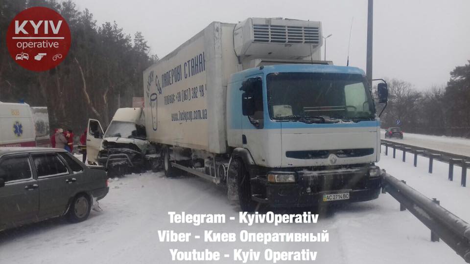 На Житомирской трассе под Киевом Мерседес залетел под фуру, трое пострадавших