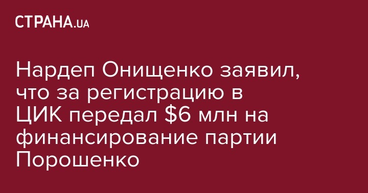 За допуск к регистрации в ЦИК по мажоритарному округу в 2014 году беглый народный депутат Александр Онищенко передал 6 млн. долларов на предвыборную кампанию партии Петра Порошенко БПП.