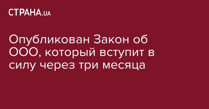 Опубликован Закон об ООО, который вступит в силу через три месяца