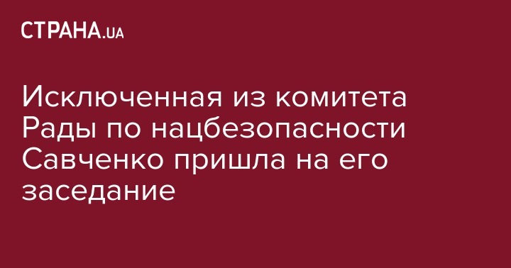 Народный депутат Украины Надежда Савченко, которую накануне исключили этого комитета,  пришла на заседание комитета  по вопросам национальной безопасности и обороны. Напомним, Верховная Рада проголосовала за исключение из состава парламентского комитета  народного депутата Надежду Савченко.