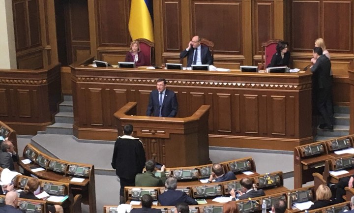 Генеральный прокурор с трибуны зачитывает обвинения в адрес Савченко, на стоит прямо перед ним, передает корреспондент "Страны" из Рады.
