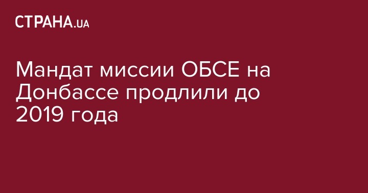 Мандат специальной мониторинговой миссии ОБСЕ на Донбассе продлен до марта 2019 года.