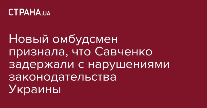 Новый омбудсмен признала, что Савченко задержали с нарушениями законодательства Украины