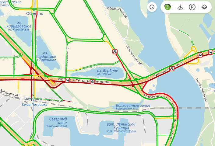 В Киеве уровень пробок на дорогах оценивается в 3 балла.