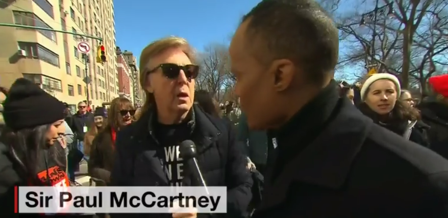 Пол Маккартни вышел на акцию "Марш за наши жизни" (March for our lives) в Нью-Йорке в память о своем друге Джоне Ленноне, застреленном убийцей Марком Чэпменом почти сорок лет назад.