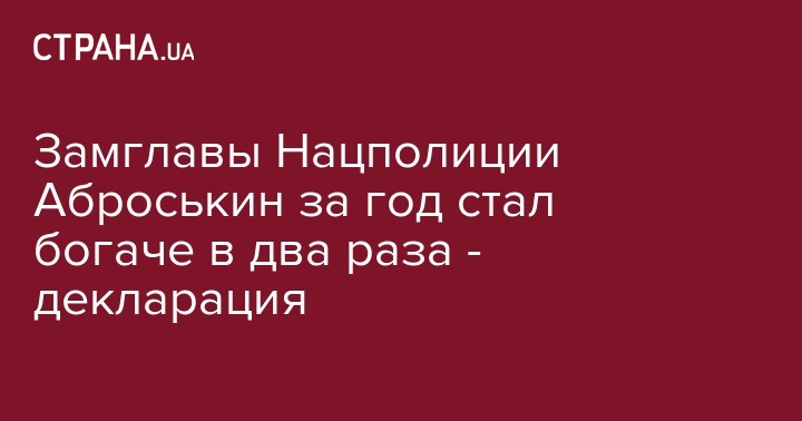 В декларации о доходах за 2017 год Аброськин указал, что у него имеется $44 000 наличных, а на банковских счетах - $2450 и 200 558 гривен. В декларации милиционера за 2016 год указано, что из денежных активов он имел всего $25 тыс.
