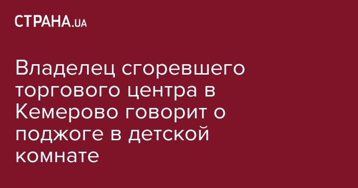 Денис Штенгелов - бенефициар части этого торгового центра и он повторил предварительную версию следователей, которые считают, что причина пожара в кемеровском ТРЦ "Зимняя вишня" - поджог в детской комнате.