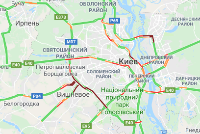 В центре движение транспорта затруднено на улице Саксаганского, Владимирской, Пушкинской, Крещатик, Большой Житомирской, Набережно-Крещатицкой улице.