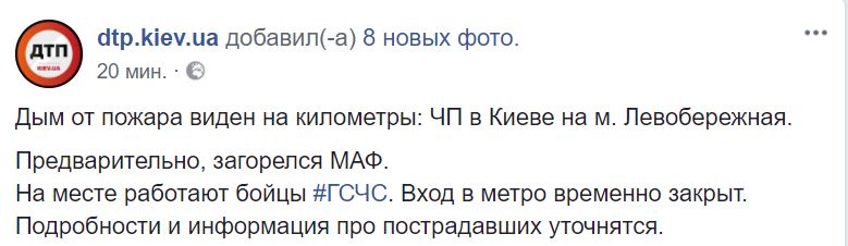 В Киеве на метро "Левобережная" произошло возгорание МАФов. Об этом сообщают пользователи в соцсетях.