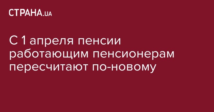 с 1 апреля для работающих украинских пенсионеров вводится автоматический расчет пенсии. Об этом пишет "Сегодня" со ссылкой на Пенсионный фонд, где объяснили, что ранее пенсию пересчитывали только для тех, кто обратился с заявлением о пересмотре.