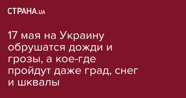 Украинский гидрометеорологический центр предупреждает об ухудшении погодных условий 17 мая.