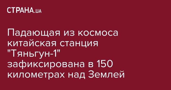 Падающая из космоса китайская станция "Тяньгун-1" зафиксирована в 150 километрах над Землей