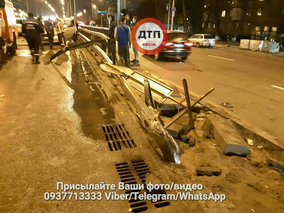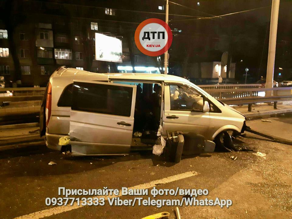 Появились фото и видео с места ДТП на проспекте Победы в Киеве, где микроавтобус протаранил отбойник
