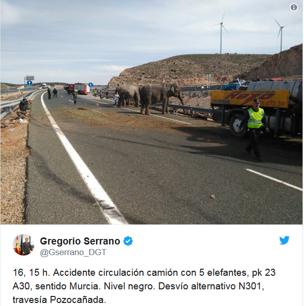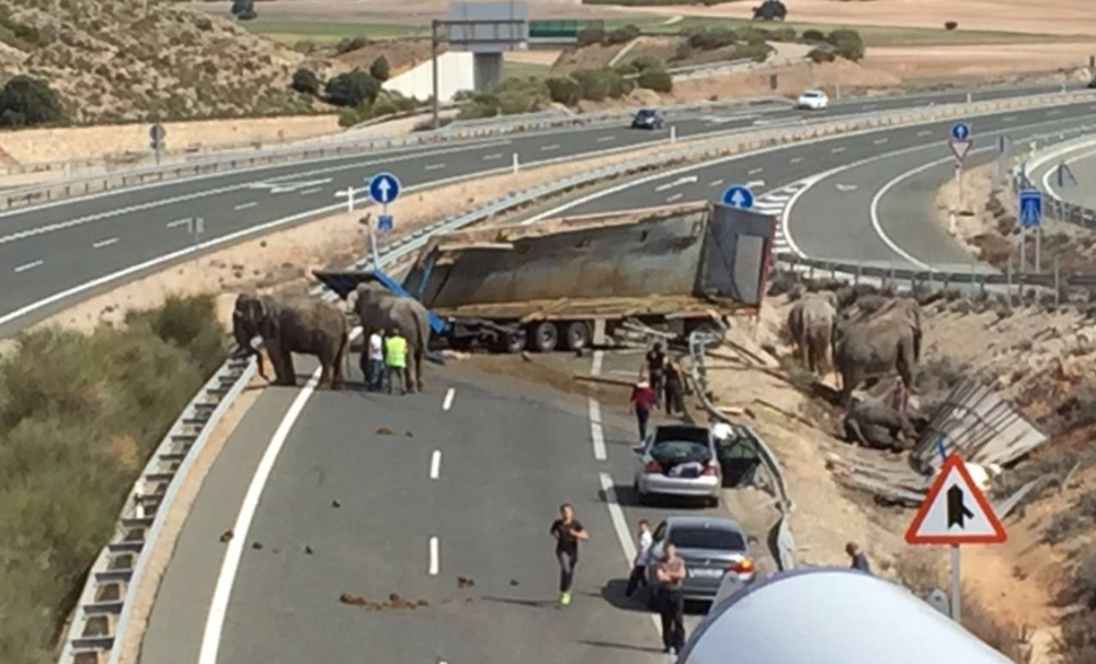 Как передает ВВС, один из слонов погиб от полученных травм, еще двое животных были ранены. Чтобы их эвакуировать, пришлось задействовать краны. В результате движение по трассе близ города Альбасете в автономном сообществе Мурсия было перекрыто на несколько часов.