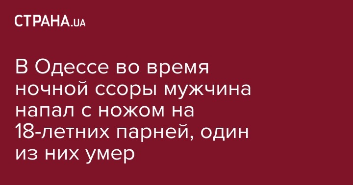 В Одессе мужчина ударил ножом двух парней, один из которых от ранения в сердце скончался в больнице.