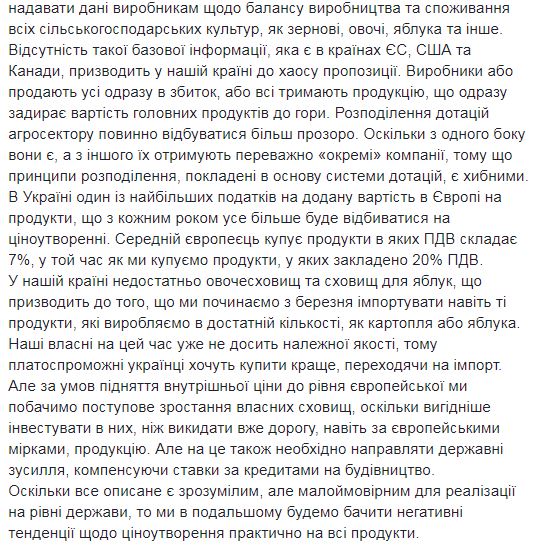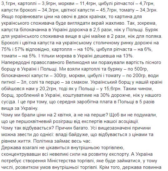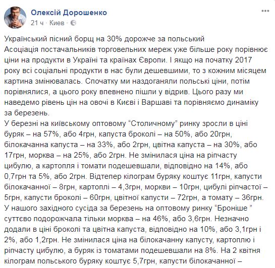 Об этом пишет на своей странице в Facebook гендиректор Украинской ассоциации поставщиков торговых сетей Алексей Дорошенко.
