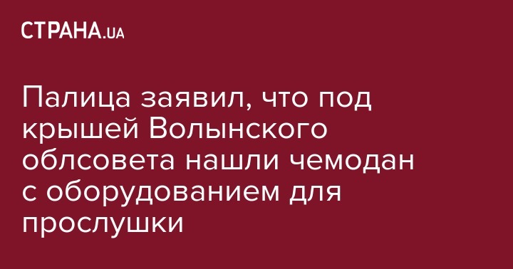 Председатель Волынской облрады Игорь Палица заявил об обнаружении 4 апреля оборудования для прослушивания. Техника была в помещении под крышей в облсовете - в чемодане.