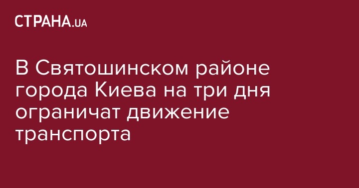 В Киеве на три дня ограничат движение транспорта в Святошинском районе. Об этом в Facebook сообщает пресс-служба КК "Киевавтодор" .
