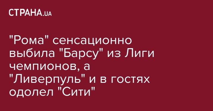 "Рома" сенсационно выбила "Барсу" из Лиги чемпионов, а "Ливерпуль" и в гостях одолел "Сити"