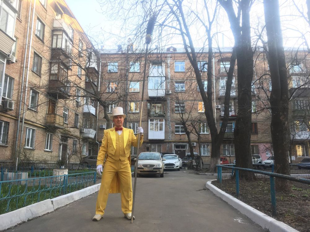 Культовый киевский дворник, который метет улицы во фраке, купил желтый смокинг