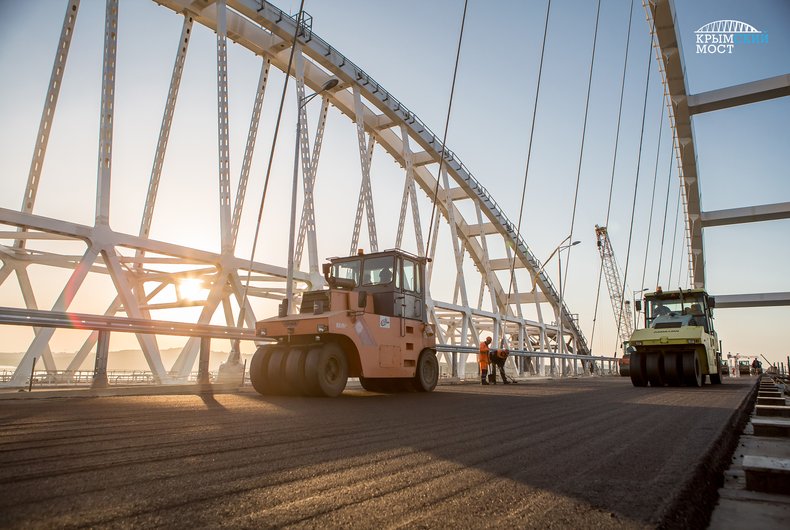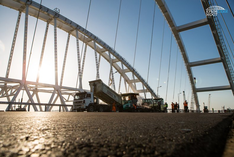 На Крымском мосту уложили первый слой дорожного покрытия. Фото