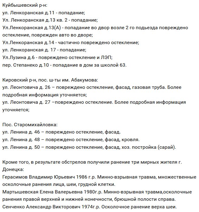 В соцсетях Донецка распространяют полный список адресов, куда "прилетело":