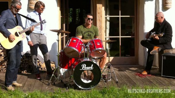 Барабаны — любимый музыкальный инструмент спортсмена и в его доме для ударной установки отведена специальная звукоизолированная комната, где Кличко может играть, не мешая родным. Видимо, пришло время представить результат занятий киевской публике.