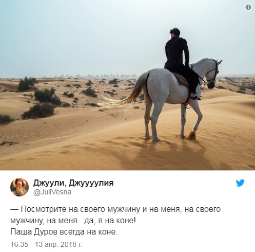 Основатель заблокированного Роскомнадзором мессенджера Telegram Павел Дуров выложил в Instagram фотографию себя на белом коне.