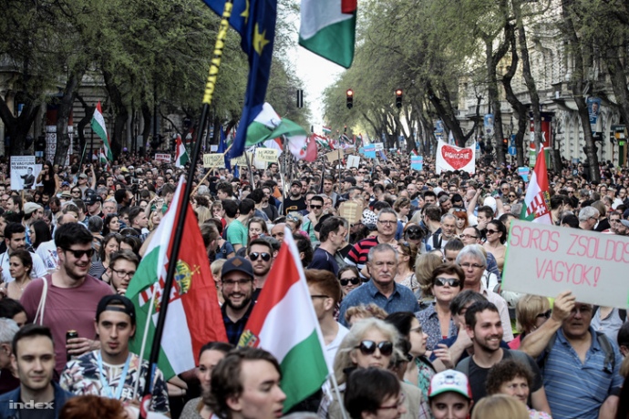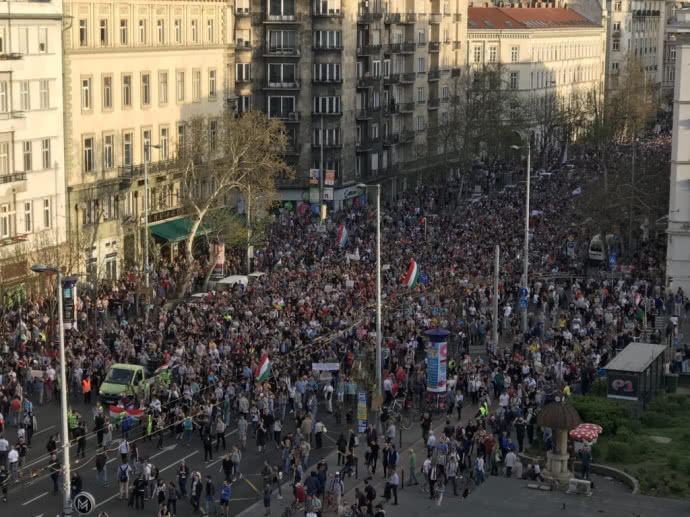 В Будапеште проходит многотысячное шествие противников действующего премьера Виктора Орбана, за партию которого проголосовали практически все венгры Закарпатья.