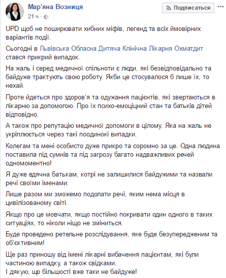 Позже Возница подтвердила "досадный случай" в больнице Львова.