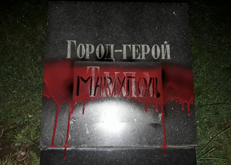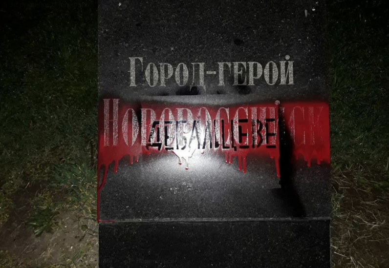 В Одессе на Аллее Славы члены радикальной националистической организации С14 закрасили названия российских городов-героев времен Великой отечественной войны и написали на их месте названия украинских городов в зоне АТО на Донбассе.