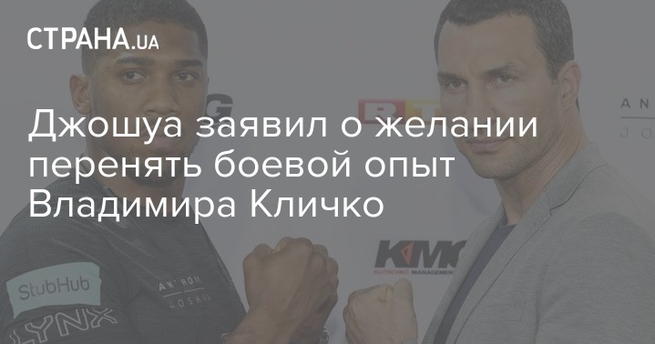 Чемпион мира по версиям IBF, WBA, WBO, IBO в супертяжелом весе Энтони Джошуа намерен перенять опыт его экс-соперника Владимира Кличко. Британский спортсмен уверен, что знания нашего чемпиона помогут подготовиться к следующим боям.