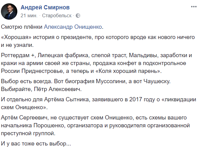 И отдельно для Артема Сытника, заявившего в 2017 году о "ликвидации схем Онищенко".