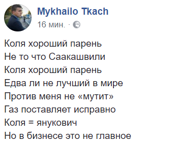 Некоторых пользователей, наслушавшихся пленок Онищенко, потянуло на поэзию. Например, журналиста Михаила Ткача: