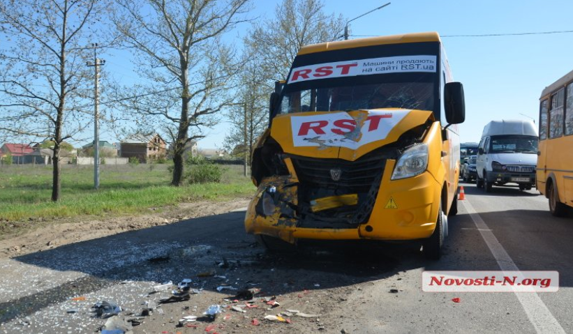 В Николаеве маршрутка с нетрезвым водителем за рулем врезалась в другую маршрутку полную пассажиров.
