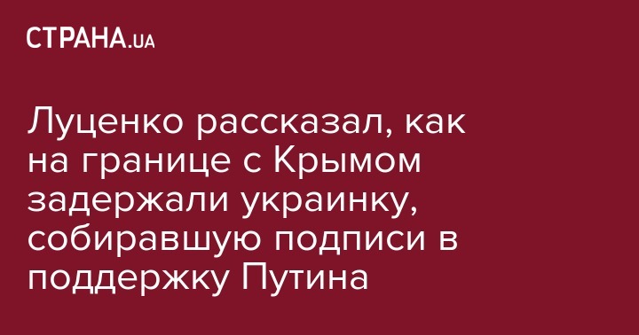 На административной границе с анексированным Крымом задержана украинка, проводившая на полуострове сбор подписей в поддержку Путина. Об этом сообщил генпрокурор Юрий Луценко на своей странице в Facebook.