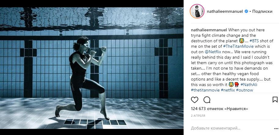 Натали Эммануэль (Миссандея) демонстрирует свое умение сидеть на шпагате, а также делится фото со съемочной площадки фильма "Титан", в котором она принимает участие.