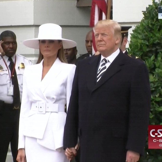 Некоторые сравнивали головной убор с шляпой Бейонсе в клипе Formation, другие увидели сходство с героем Джуда Лоу в сериале "Молодой папа". В любом случае, Мелания Трамп, в очередной раз не угодила "модельерам" из сетей.