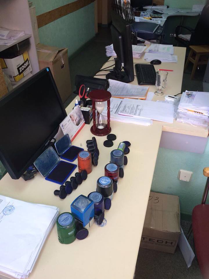 В ходе обысков обнаружены и изъяты печати фиктивных предприятий, черновые записи, бухгалтерские и финансово-хозяйственные документы, подтверждающие противоправную деятельность, а также наличные в национальной и иностранной валюте на общую сумму около 2,4 млн грн.