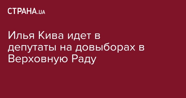 Илья Кива идет в депутаты на довыборах в Верховную Раду