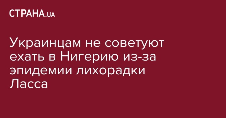 В связи со вспышкой в Нигерии эпидемии лихорадки Ласса, острого инфекционного заболевания из группы вирусных геморрагических лихорадок, Министерство иностранных дел Украины рекомендует гражданам Украины, которые путешествуют в Федеративную Республику Нигерия, воздержаться от посещения ряда штатов этой африканской страны.